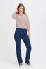 This women's top features a relaxed fit, classic crew neckline, and comfortable 3/4 sleeves. Ideal for both casual and smart-casual outfits, its straight silhouette ensures ease of movement and versatile wearability.