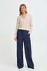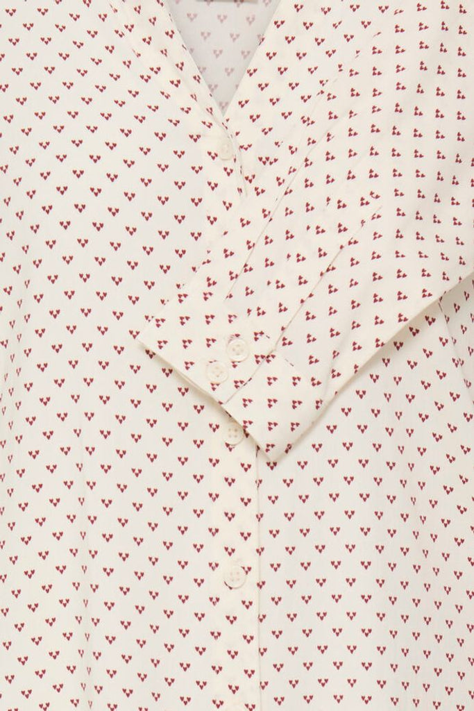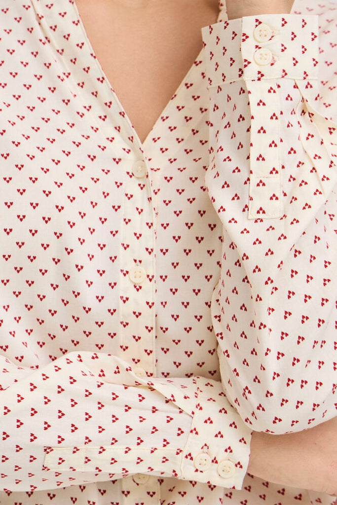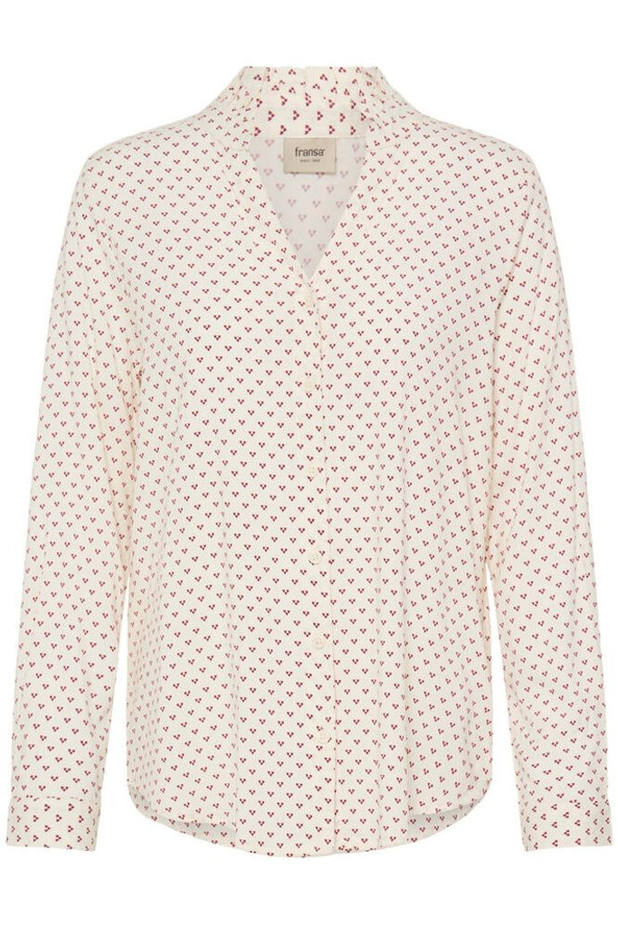 A button up blouse with relaxed fit, featuring a flattering V-neckline and frill detail at the neck. Long sleeves offer added comfort. Suitable for work or casual occasions, this top brings versatility to any wardrobe.