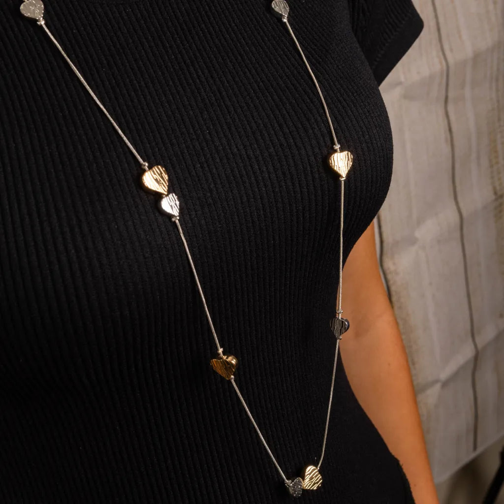 Introducing our Exquisite Silver or mixed Gold & Silver-Plated Cascading Heart Necklace: A Timeless Emblem of Love and Elegance!
