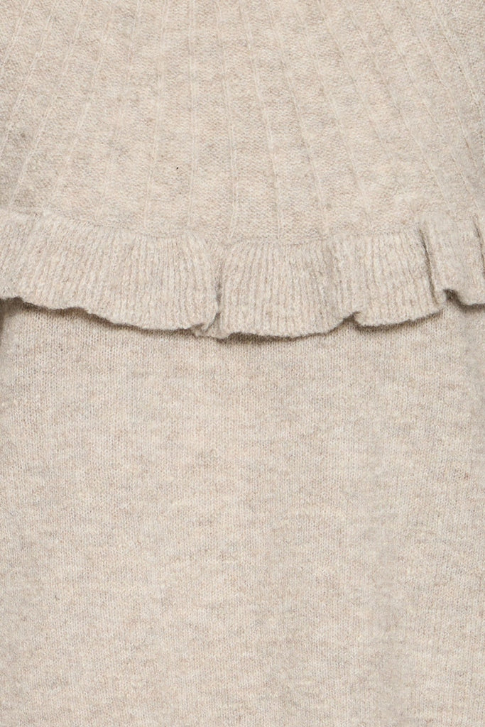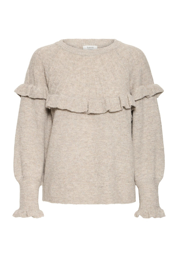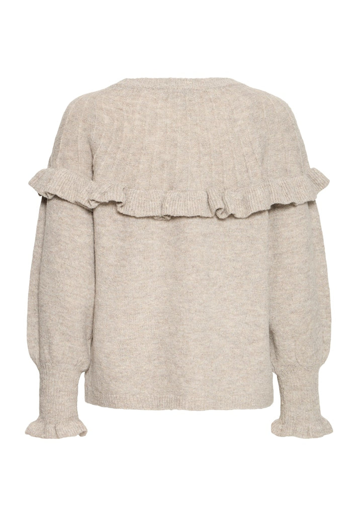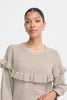 Discover cosy style with this knit sweater featuring a relaxed fit, ruffled accents on the chest and sleeves, round neckline, and soft feel. Designed for comfort, this versatile piece is perfect for layering or wearing solo.