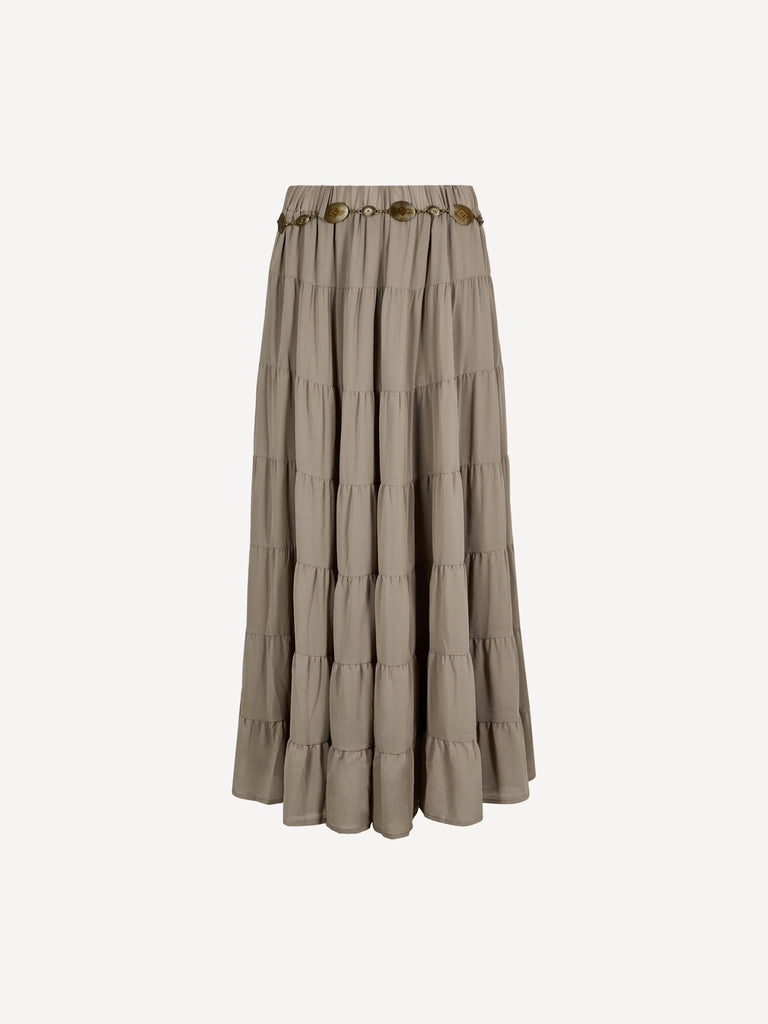 Designed in chiffon and lined for comfort, this boho chic maxi skirt falls in soft tiers and features an elastic waist for the perfect fit plus a detachable metal chain belt. Style this chiffon tiered maxi skirt with a camisole and sandals to take it from festivals to garden gatherings and everything in between.
