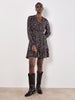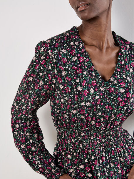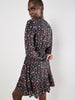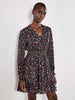 Feminine florals meet shimmering metallic stripes with this must-have mini dress. Woven and lined for comfort, it features a V-neck with a button-down bodice, blouson sleeves, and a ruffle-tiered skirt to create a playful silhouette. It's finished with a smocked waist for a flattering fit. Style this ditsy mini dress with cowboy boots for a boho-inspired finish you'll wear to brunch dates and plans with friends.