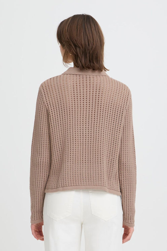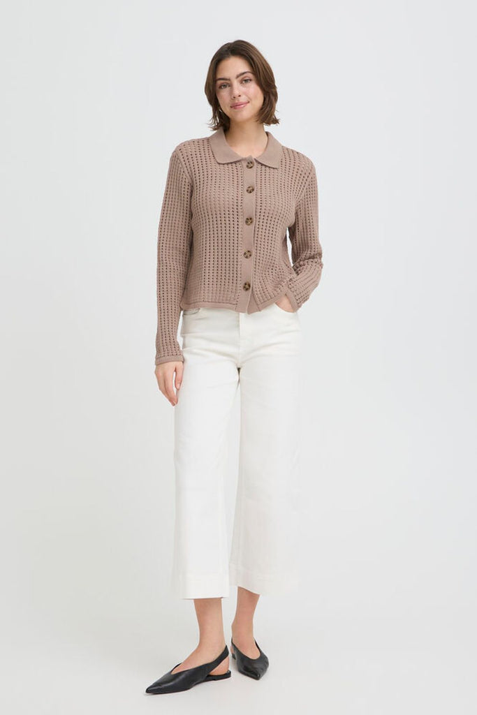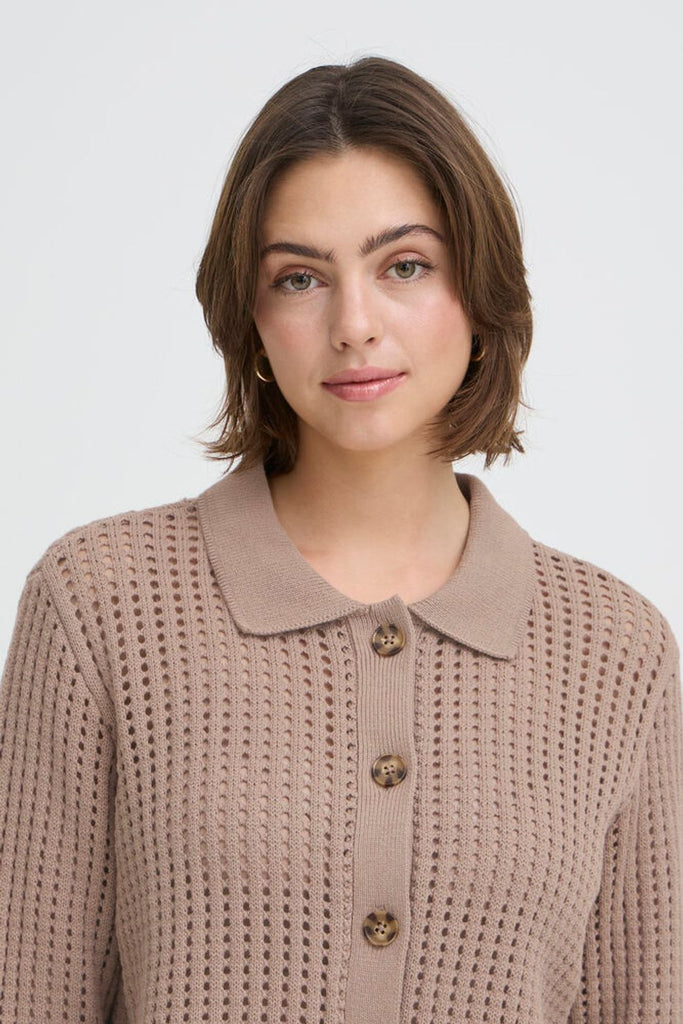 Effortlessly stylish, the Fransa Layla Short Collared Cardi features an open knit detail that adds visual interest to this relaxed-fit essential. Crafted from a breathable cotton-acrylic blend, it's designed for comfort without compromise. Perfect for layering or wearing solo, this versatile piece transitions seamlessly from casual weekends to laid-back workdays. Machine washable for easy care.