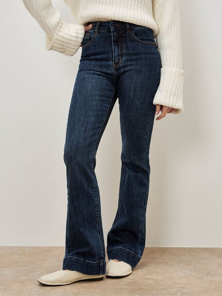 When the weekend arrives, the Lena jeans are the perfect pick. Designed in soft denim with a hint of stretch for a comfortable finish, they feature a retro-inspired fit and flare cut to create a flattering silhouette, cuffed hems, and practical pockets. On cooler days, style these flared jeans with a chunky-knit roll neck and ankle boots.