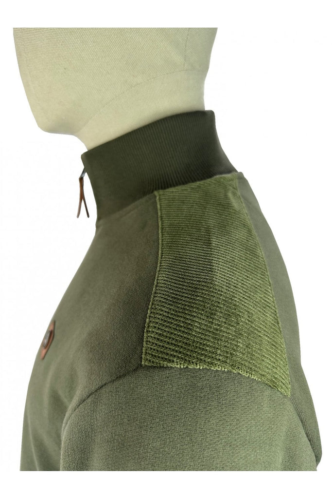 - Quarter zip with corn trim on zip and shoulder (also on inner yoke patch)