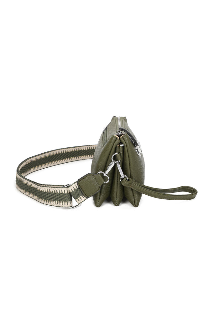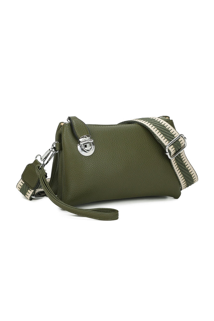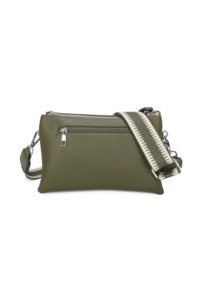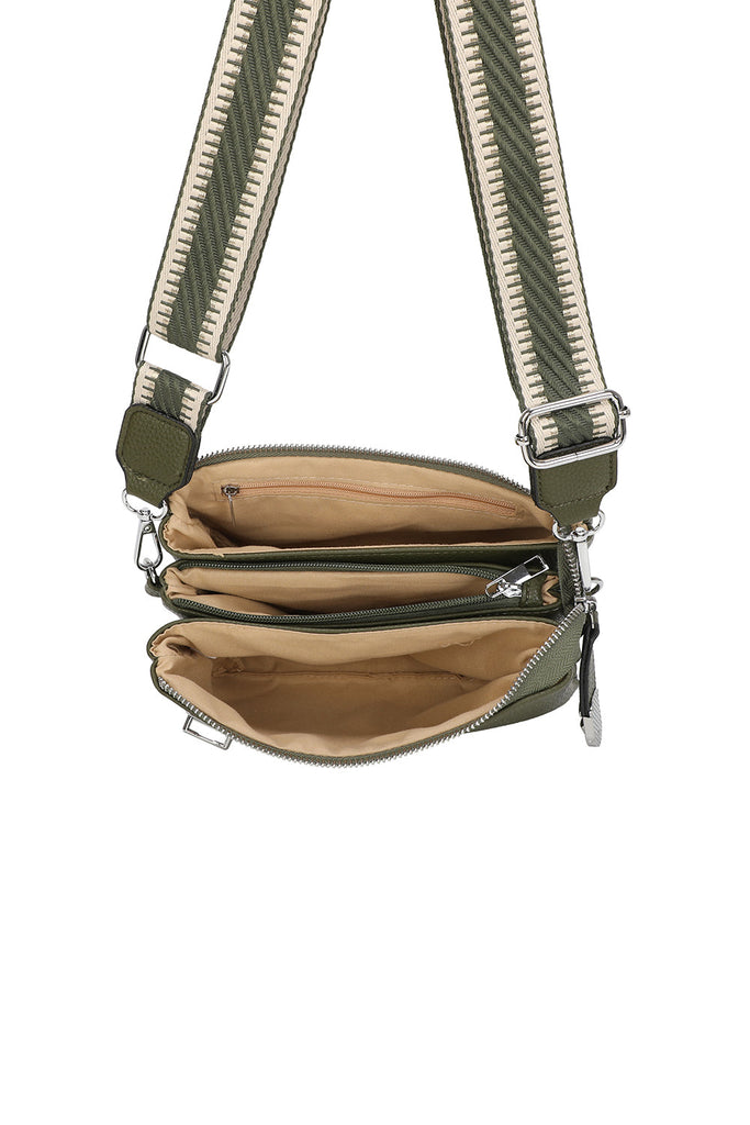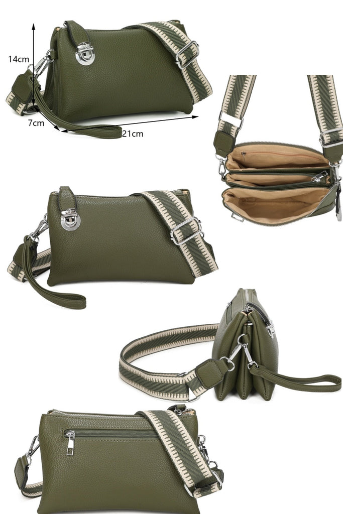 A small size crossbody bag featuring five internal pockets, a zip to close completely & a clip lock for security.